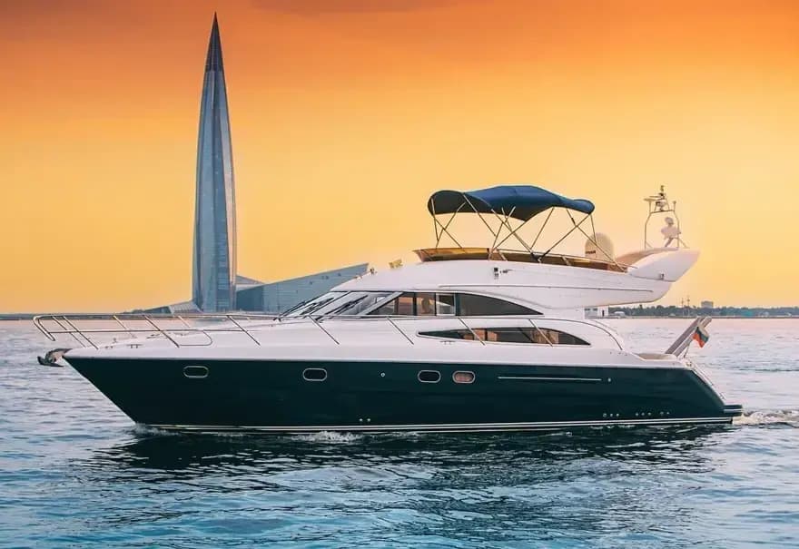 Моторная Яхта Meridian 381, вмещает до 10 гостей. Отличный выбор для проведения свадьбы на воде, романтических свиданий с ужином под звёздами, а также прогулки по Финскому заливу.